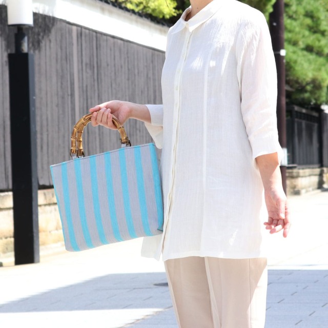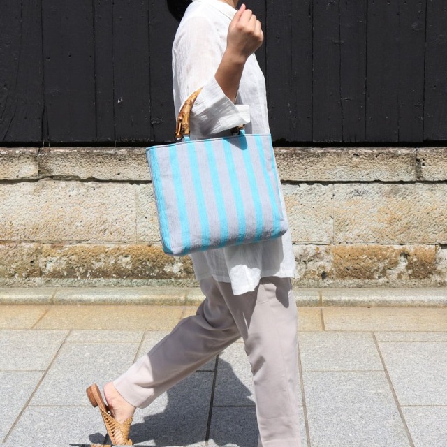 日本が誇る伝統工芸「小千谷縮」の伝統技法に独自の改良を加えたバッグです。さらりとした触り心地、シャリ感が特徴で天然繊維の麻100%で作られています。