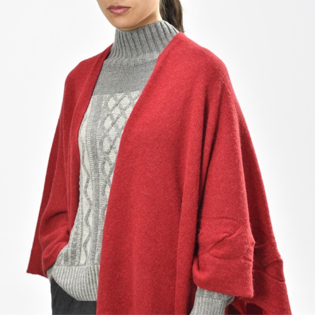 冬らしい素材のニットポンチョ