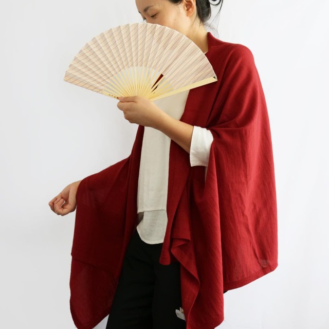 こっくりとした深みのある秋らしい色合いとシンプルな無地の天竺編みで、羽織るだけで季節感のある雰囲気にしてくれます。