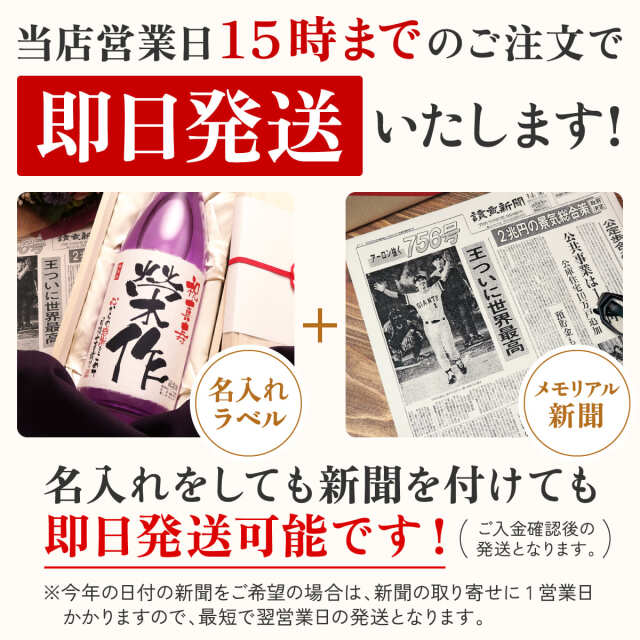 お父さんが過ごしたあの頃。お母さんと出会った日。お父さんが生まれた日は?私が生まれた日は?お好きな日の“メモリアル新聞”を添えて、世界に一つのお酒と共に最高の演出を致します。